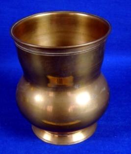 | Description / विवरण | Brass goblet having featureless rim, long broad neck, round body and circular base. |