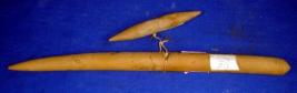 | Description / विवरण | Wooden playing object called Gulli-Danda . The gulli has pointed ends and incised circular designs. The danda is conical at one end and pointed at the other. |