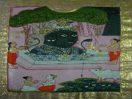 | Description / विवरण | Miniature painting depicting Shri Dakshini Bakka the from of Shiv where two priests are also seen and in the lower part. Shiv is seen sitting with a man. |