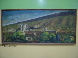| Description / विवरण | It s an oil canvas of old palace. It s a fort seen. Temple and trees and some part of fort are painted in foreground. High building, mountain, trees are painted. Upper part is painted in blue colour with diagonal line. Colour used are green, blue, brown, white and yellow. Its artist is Mathuranath . |