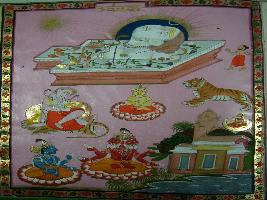| Description / विवरण | Miniature painting depicting Urdha Bakka from of Shiv where in the lower part Shiv, Narayan and Brahma is seen in the painting. |