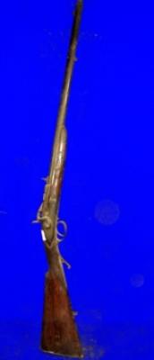 | Description / विवरण | Long single barrel topidar gun with a simple wooden butt. |