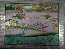 | Description / विवरण | Miniature painting depicting the Dakshinavatar of Krishna. The painting depicts four armed Vishnu on Garuda and other Devtas are also seen. while a scenes of Gajendramoksha also seen in the lower part of the painting. |