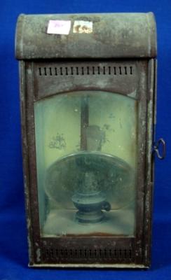 | Description / विवरण | Hanging oil lantern, rectangular in shape. A circular mirror is there for reflection. It can be opened from one side and has a wooden handle. |