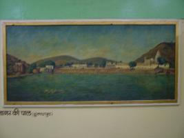 | Description / विवरण | It s an oil canvas of landscape painting gap sagar . Small boat with figure in foreground. Small figure, temple, architecture, trees and mountains are painted. Upper part is painted with green, yellow colour. Its artists is Mathuranath . |