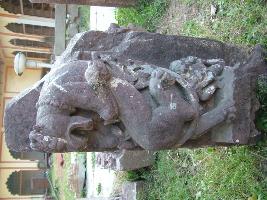 | Description / विवरण | It is an architectural fragment having yali. Sculpture in attacking pose on one leg. One male miniature sculpture is carved at the base. |