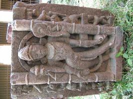 | Description / विवरण | It is a sculpture of four armed Vishnu shown holding mace, chacra, lotus in varada holdign rosary, have a round halo, flanked by Bharvahak and yali. |