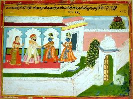 | Description / विवरण | Miniature painting based on Krishna charit. Balram is in Mathura. Devki is seen behind Kansa. |