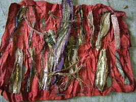| Description / विवरण | This group of seven small laces are zarid with gold only with brown borders, and few are with black. Most of laces are very reflecting and woven in zigzag manner. |