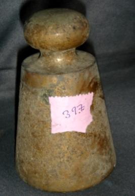 | Description / विवरण | Brass weight of 2 ser, conical in shape with high circular knob. |