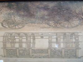 | Description / विवरण | Conveyances 16th century. The carriage represented here is of this kind and richly carved and gilded. The glass in the windows is venetian. Second carriage represents of much earlier date taken off its wheels. |