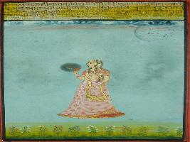 | Description / विवरण | Miniature painting depicting full size portrait of Padmini, facing right, holding a flower in her right hand. She is adorned with jewels and wearing a transparent chunri. |