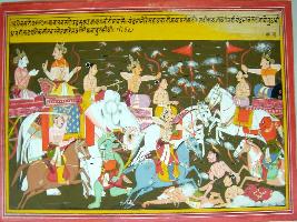 | Description / विवरण | Miniature painting based on Harivansha depicting fight between Maya and gods like Indra, and Varun. The painting is unfinished. |