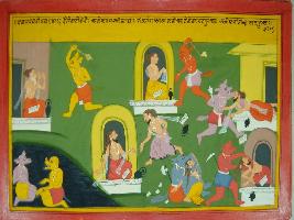| Description / विवरण | Miniature painting based on Mahabharat - Vana parva depicting demons are killing sages and destroying their hermitage. |