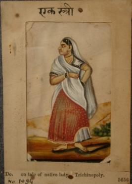 | Description / विवरण | Miniature painting on mica depicting a native lady in standing pose. |
