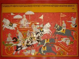 | Description / विवरण | Miniature painting based on Mahabharat - Bhishma parva depicting Bhim is fighting with the gada to all the soldiers. |
