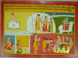 | Description / विवरण | Miniature painting based on Mahabharat - Vana parva depicting marriage of daughter of Vidarbha king and son of Naishib king. |