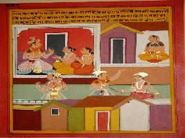 | Description / विवरण | Miniature painting based on Panchtantra depicting asking two Brahmans what to do with his daughter. Then the Brahman express his wish to marry that female. |