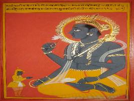 | Description / विवरण | Miniature painting based on Shri Bhagwat Gita. The painting depicts the Vishwaroop from of Krishna where Arjun also seen their who is standing in namaskara mudra. |