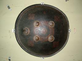 | Description / विवरण | It is a shield, consisting floral structure. Four brass bowl are studded on it forming square and each edge consisting one brass floral structure bowl. At the top of the shield, crescent moon not full is also shown made from brass, in floral structure. |