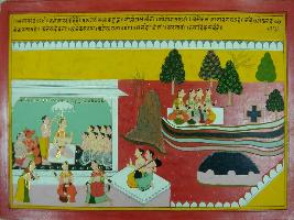 | Description / विवरण | Miniature painting based on Mahabharat - Sabha parva depicting Narad telling about the sbha of Varun. He is describing its extension and beauty. |