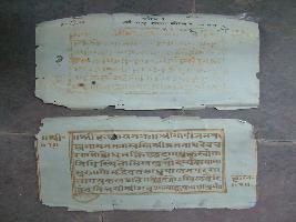 | Description / विवरण | It is a shatru-shalya shloka i.e. the chantings of how to operate on enemy is written on a page. An another page has its impression, is written in golden colour ink. |