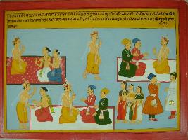 | Description / विवरण | Miniature painting based on Mahabharat - Vana parva. The painting depicts raja Lumpad is talking with two Brahmans while in the other side of the painting king is seen talking with ministers. |
