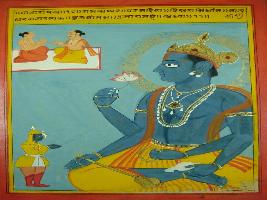 | Description / विवरण | Miniature painting based on Shri Bhagwat Gita. It is depiction of two Brahmans talking Krishna is depicted showing Arjun his Vishwaroop on the eve of Mahabharat war in Kurukshetra. |