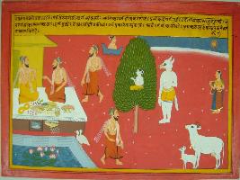 | Description / विवरण | Miniature painting based on Mahabharat - Vana parva depicting Vyas and rishi Shringi and talking about the Agniyutra yagna. Then Shringi replied that it could not completed due to the influence of Kamdev. |