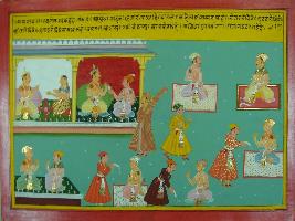| Description / विवरण | Miniature painting based on Mahabharat - Sabha parva. The painting depicts Narad telling Yudhisthir about the duties and dharma of a king. |
