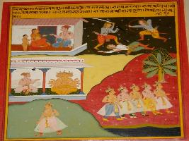| Description / विवरण | Miniature painting based on Panchtantra depicting a female saying all kings has to suffer in the way Ram and Pandavas suffered for their exile, all Yadavs are killed and king Nal lost his kingdom. |