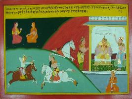 | Description / विवरण | Miniature painting based on Mahabharat - Sabha parva depicting the duties and responsibilities of a king towards his states and subjects. |