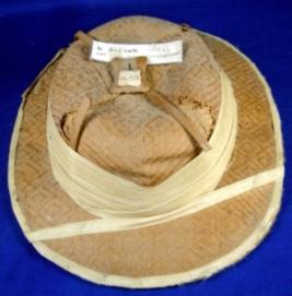 | Description / विवरण | Hat made of sandalwood having intricate weaving and decorated with silk ribbon. It is padded with cloth from inside. |