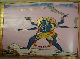 | Description / विवरण | Miniature painting depicting four handed Makali standing on Shiva. |