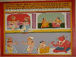| Description / विवरण | Miniature painting based on Panchtantra depicting a king telling the story of a demon to his three daughters. |
