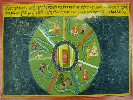 | Description / विवरण | Miniature painting based on Mahabharat - Bhishma parva depicting the extension of earth and narrats about Jambudeepa. |