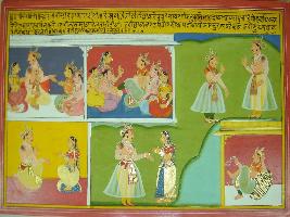 | Description / विवरण | Miniature painting based on Harivansha depicting Manu with his wife and his sons in different panels. |
