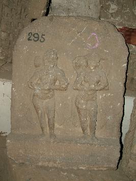 | Description / विवरण | This Memorial stone is having figures of portion Bhiv Singh and his wife . They have been shown in standing posture upper portion of it is half oval shaped. Lower portion is having two lines of Devnagari scripts. |