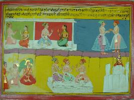 | Description / विवरण | Miniature painting based on Mahabharat - Bhishma parva depicting to the south of north of Nighakh on the Ramyaka tree man was born in 11,500 years ago and in this tree Garuda lives. |