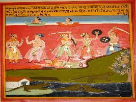 | Description / विवरण | Miniature painting based on Panchtantra depicting the story of a foolish crocodile and wise monkey. |