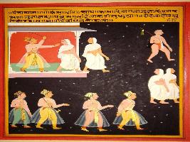 | Description / विवरण | Miniature painting based on Panchtantra depicting that one should have all sense organs but he shouldn t have lust and greed. |