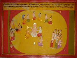 | Description / विवरण | Miniature painting based on Mahabharat - Bhishma parva. It describe the activities going on in Meru Parvat. It says that Meru Parvat is lightened by Surya dev s light. Many gods and rishis, demons, Brahma, Indra, Shiv and Sapta rishi are residing there. |