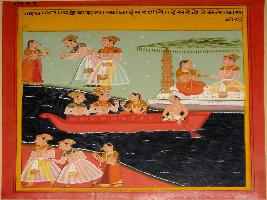 | Description / विवरण | Miniature painting based on Panchtantra depicting the marriage of blind person and later he came to his home with his wife and his hunch friend. |