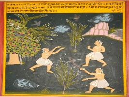 | Description / विवरण | Miniature painting based on Panchtantra depicting Shivsharma s views about daan. The painting depicts that heaven and hell is totally based on daan. |