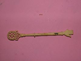 | Description / विवरण | It is an arm of ivory, shown with folded palm and wheel abacus on top. |