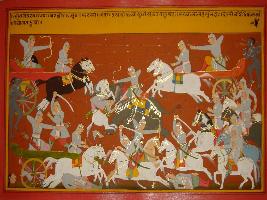 | Description / विवरण | Miniature painting based on Mahabharat - Bhishma parva depicting the weapons used in the war and how bravely warriors fought the war. The weapons used in war are Gada, Farsi, Barchi etc. |