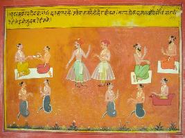 | Description / विवरण | Miniature painting based on Mahabharat - Udyam parva depicting the Rasatal where one can hear the talks about Patalloka. It also says that there are three lokas Swargaloka, pataal loka and the earth and the happiness that people get here will not get anywhere. |