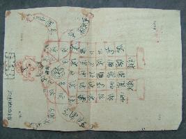 | Description / विवरण | It is a manuscript in which yantra is made up of 50 human figures, writing Om Hrim, Klim, Sri, Om, Nam . A four armed human figure is carved out with sanan body. |