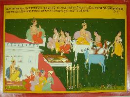 | Description / विवरण | Miniature painting based on Mahabharat - Vana parva depicting the penance and sacrifice performed by king Mandhala and his donations to Brahmans. |