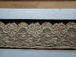 | Description / विवरण | It is a machine made lace with a white base and semicircular shaped. It is a floral pattern designed. |